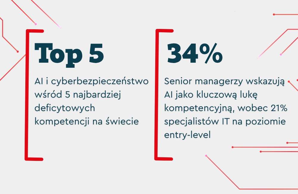 Niedobór kompetencji pozostaje jedną z kluczowych cech rynku pracy w branży IT w 2026 roku. AI oraz cyberbezpieczeństwo nadal znajdują się wśród najbardziej deficytowych kompetencji na świecie. Postrzeganie tych braków różni się jednak w zależności od poziomu stanowiska - 34% senior managerów wskazuje AI jako krytyczną lukę kompetencyjną, wobec 21% specjalistów IT na początku kariery. Wysokie zapotrzebowanie na kompetencje z obszaru software engineering, cloud oraz platform utrzymuje się we wszystkich sektorach, co potwierdza trwałe wyzwanie związane z pozyskiwaniem doświadczonych talentów technicznych.
